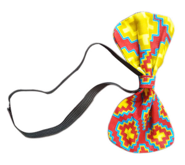 Ce noeud papillon en véritable tissu wax conseillé aux couleurs rouge, jaune, bleu, et noir est idéal pour les cérémonies de mariage, les galas ou les fêtes estivales.