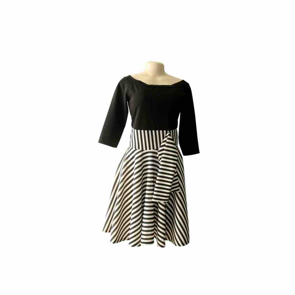 Robe évasée col rond noire rayée