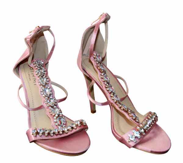 SIMMI LONDON – Sandales rose à talons hauts avec perles