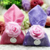 Support dragées – Sac avec fleur rose
